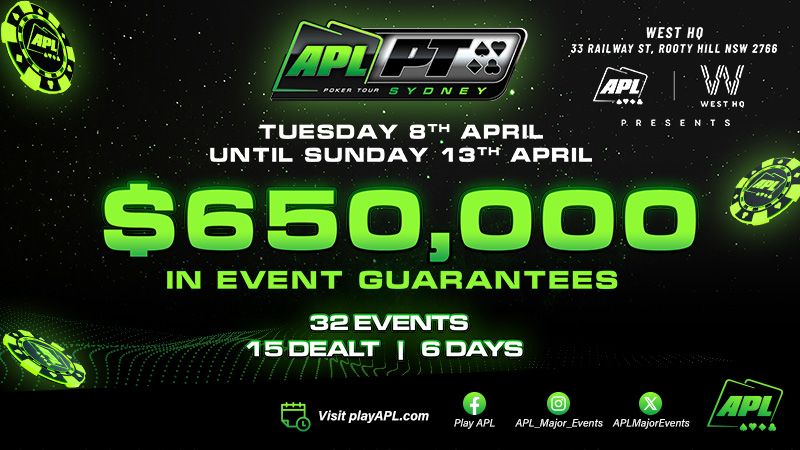 $650K GTD APLPT Sydney| 8th April - 13th April 2025| West HQ, Sydney© 2024 PokerPanda. All rights reserved.